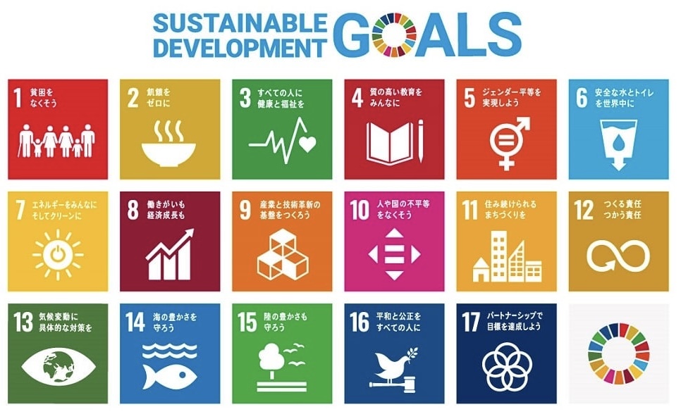 進むべき道を示した SDGs を元に、持続可能な社会づくりを国や企業など世界全体で取り組んでいこうという意図が込められています。